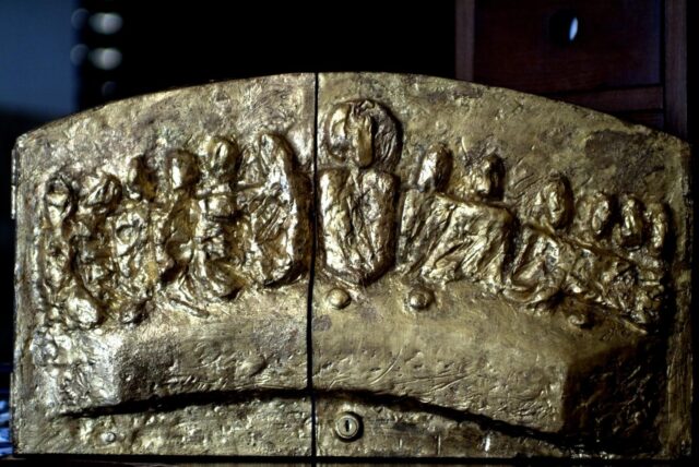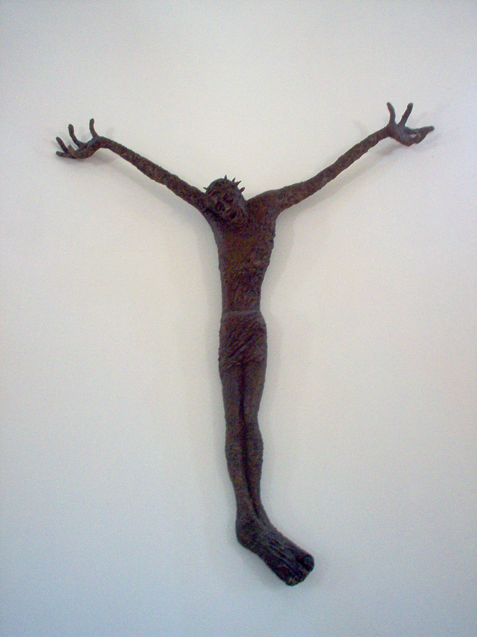 Skulptura raspetog Krista Ljubice Dragojević Buble koja se nalazi iza oltara u crkvi svete Marte u Planom kod Trogira. Krist visi na zidu bez Križa, ili na nevidljivom Križu , njegovo je tijelo deformirano i snažno stilizirano. Kao da samo sobom simbolizira križ. Sva energija njegove bolne obješenosti kao da se slila u goleme otvorene šake. Ne vide se čavli, ili se slabo vide, no napadno odskaču golemi rastvoreni prsti. Ti rastvoreni prsti snažno sugeriraju patnju. Krist je snažno i skladno stiliziran u Patnika čiju bol možemo vizualno vrlo neposredno osjetiti. U isti mah, svojom snažnom stilizacijom nadrasta patnika u viziju uskrslog Krista! Onoga koji je nadvisio patnju i već zrije ovdašnju ljepotu i sklad svojim pogledom iz nadsvijeta.